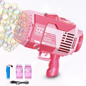Upgraded 132 Holes Bubble Machine Gun, Bazooka Bubble Machine, Rocket Bubble Gun Bubble Machine, Summer Toys Bubble Blaster Maker for Kids, Wedding, Birthday Gift (Pink)