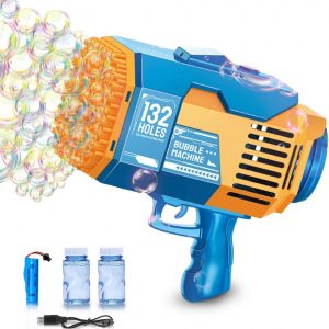 Upgraded 132 Holes Bubble Machine Gun, Bazooka Bubble Machine, Rocket Bubble Gun Bubble Machine, Summer Toys Bubble Blaster Maker for Kids, Wedding, Birthday(Blue)