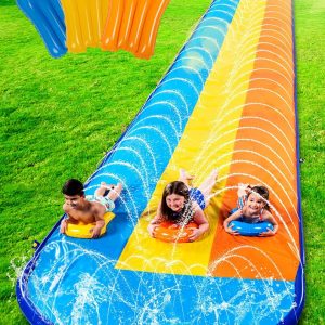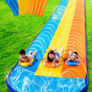 Sloosh Triple Water Slide with 3 BodyBoards, 22.5FT Lawn Water Splash Slip and Slide Summer Toy Splash Pad with Build in Advanced Sprinkler for Kids Adults Backyard Summer Water Fun