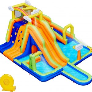 Yaheetech Inflatable Water Slide w/ 2 Long Slides & Large Climbing Wall & Small Deeper Pool & Awning, 11-in-1 Outdoor Blow Up Water Slide w/Storage Bag & 950W Blower